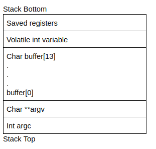 even though the stack grows downwards, when data is copied/written into the buffer, it is copied from lower to higher addresess. Depending on how data is entered into the buffer, it means that it’s possible to overwrite the integer variable. From the C code, you can see that the gets function is used to enter data into the buffer from standard input. The gets function is dangerous because it doesn’t really have a length check - This would mean that you can enter more than 14 bytes of data, which would then overwrite the integer variable.