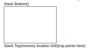 rsp) by 8 - Writes above value to new location of rsp, which is now the top of the stack