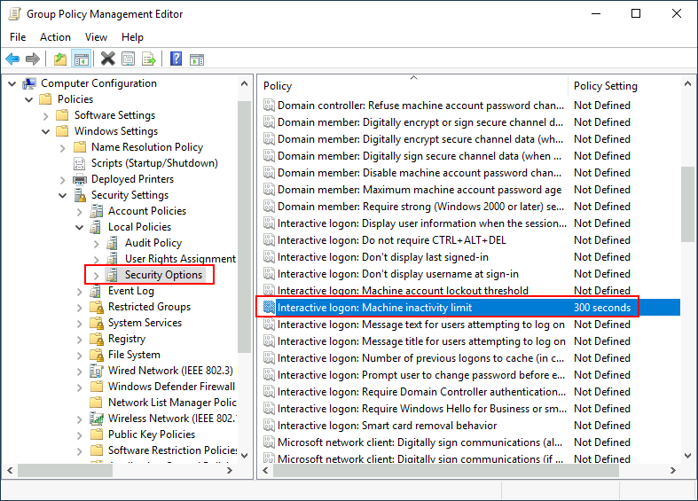 We will set the inactivity limit to 5 minutes so that computers get locked automatically if any user leaves their session open. After closing the GPO editor, we will link the GPO to the root domain by dragging the GPO to it: