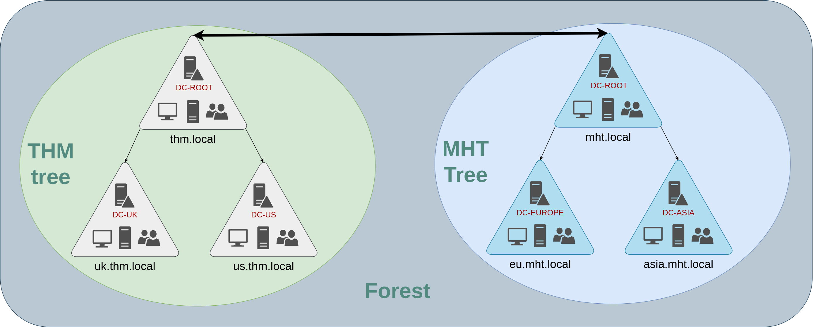 Having multiple domains organised in trees and forest allows you to have a nice compartmentalised network in terms of management and resources. But at a certain point, a user at THM UK might need to access a shared file in one of MHT ASIA servers. For this to happen, domains arranged in trees and forests are joined together by trust relationships.