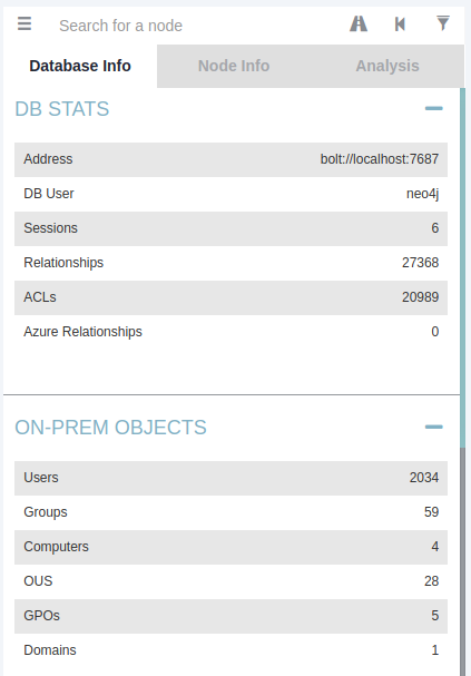 Note that if you import a new run of Sharphound, it would cumulatively increase these counts. First, we will look at Node Info. Let’s search for our AD account in Bloodhound. You must click on the node to refresh the view. Also note you can change the label scheme by pressing LeftCtrl.