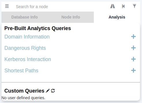 Next, we will be looking at the Analysis queries. These are queries that the creators of Bloodhound have written themselves to enumerate helpful information.
