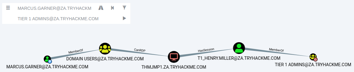 Our Start Node would be our AD username, and our End Node will be the Tier 1 ADMINS group since this group has administrative privileges over servers.