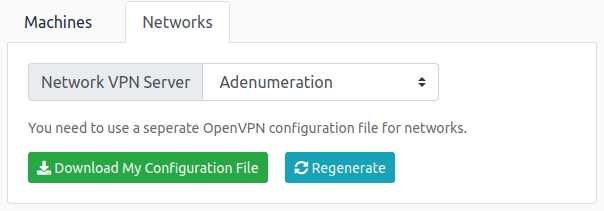 If you are going to use your own attack machine, an OpenVPN configuration file will have been generated for you once you join the room. Go to your access page. Select ‘EnumeratingAD’ from the VPN servers (under the network tab) and download your configuration file.